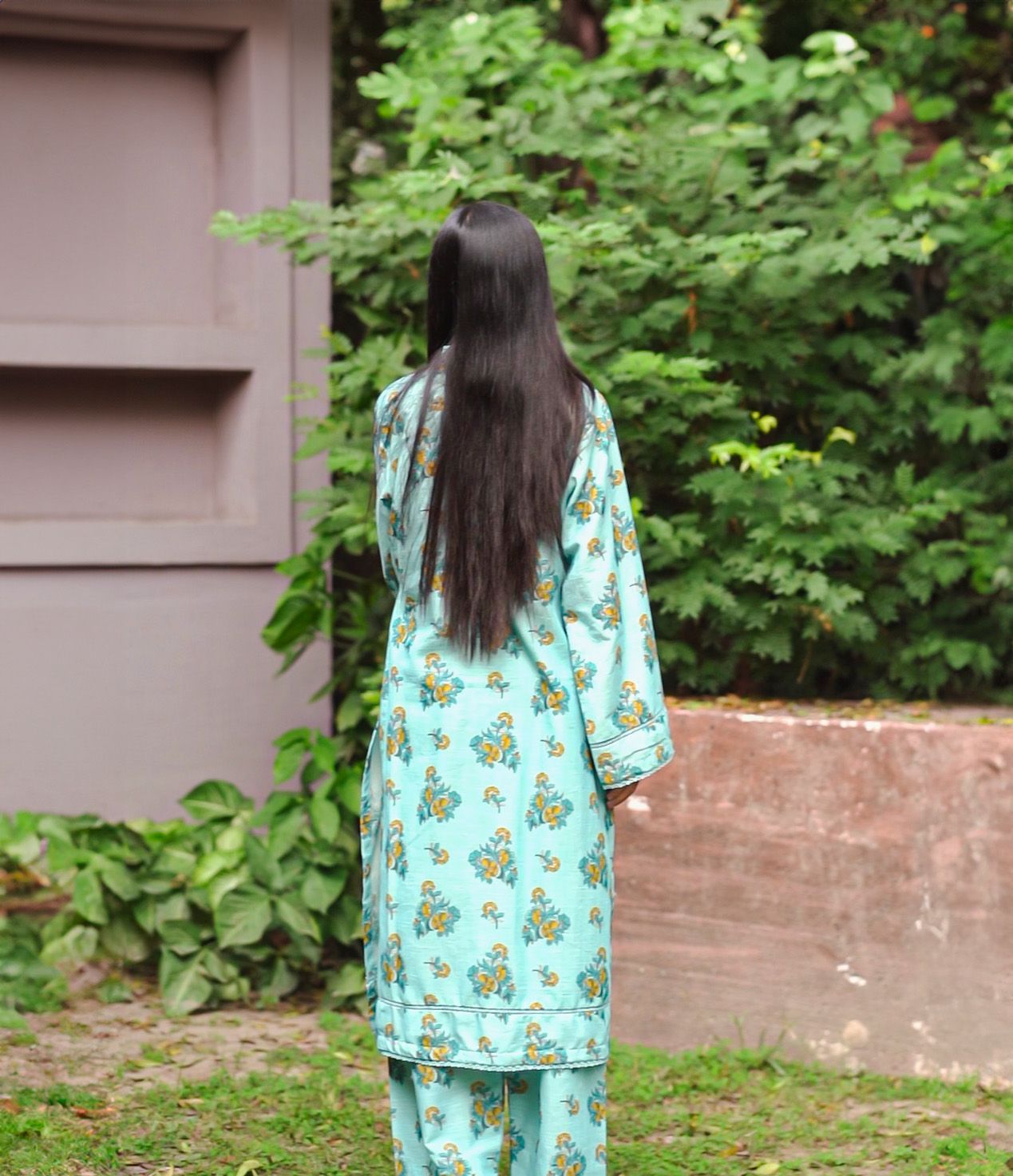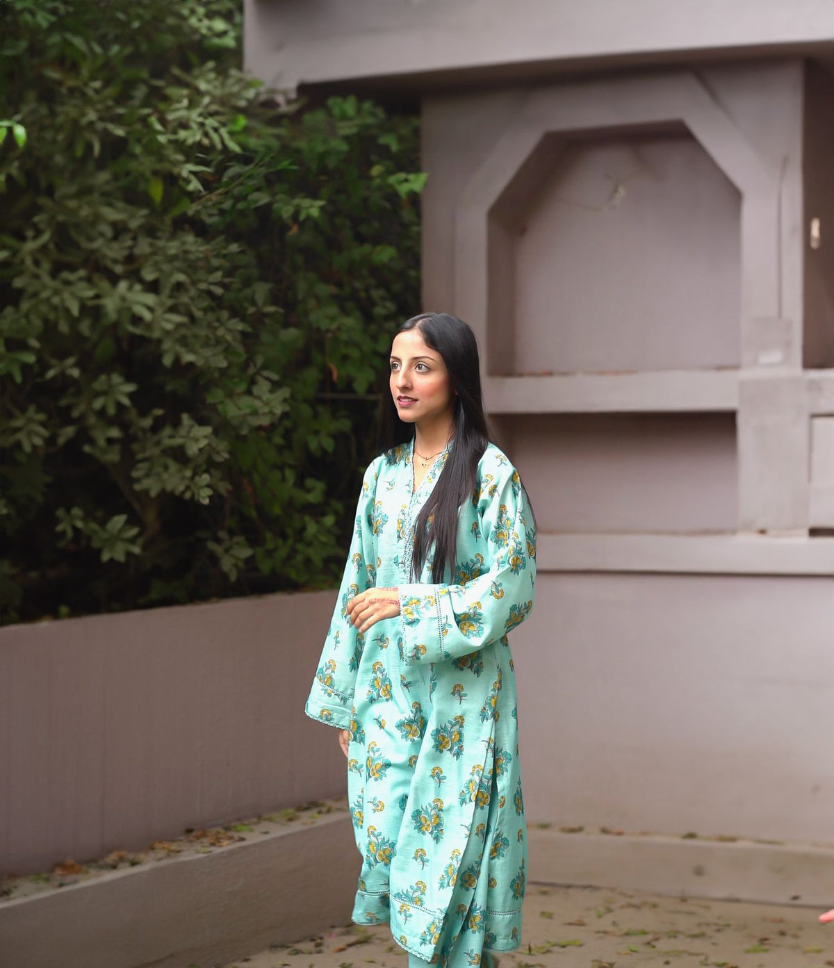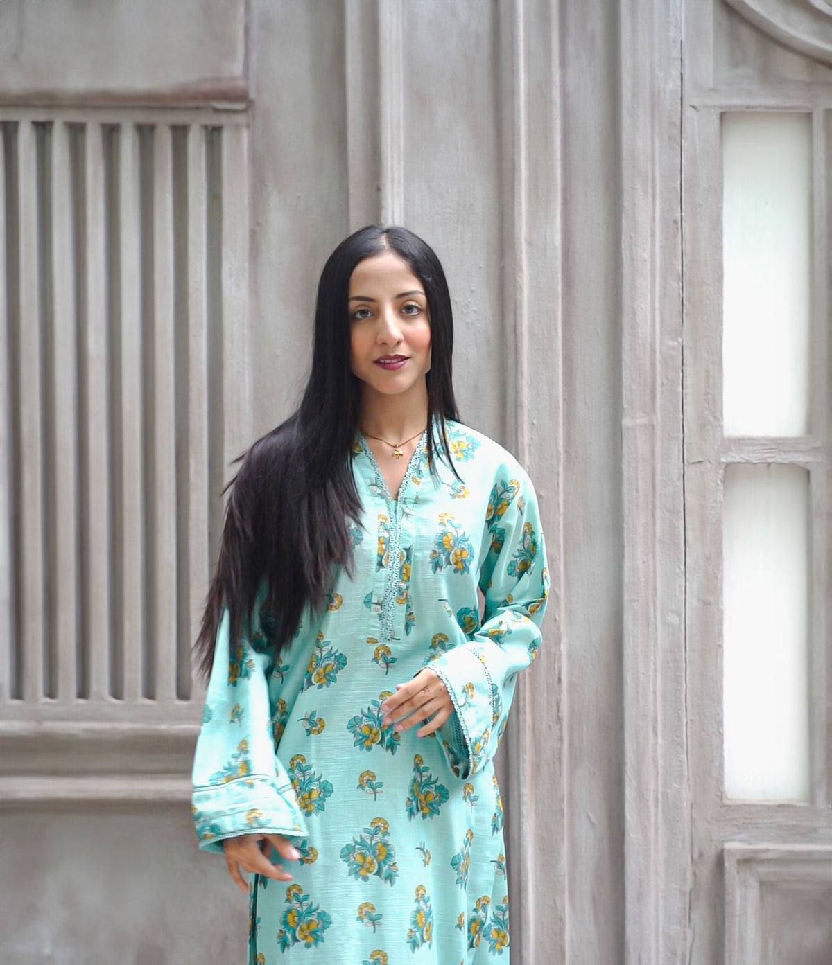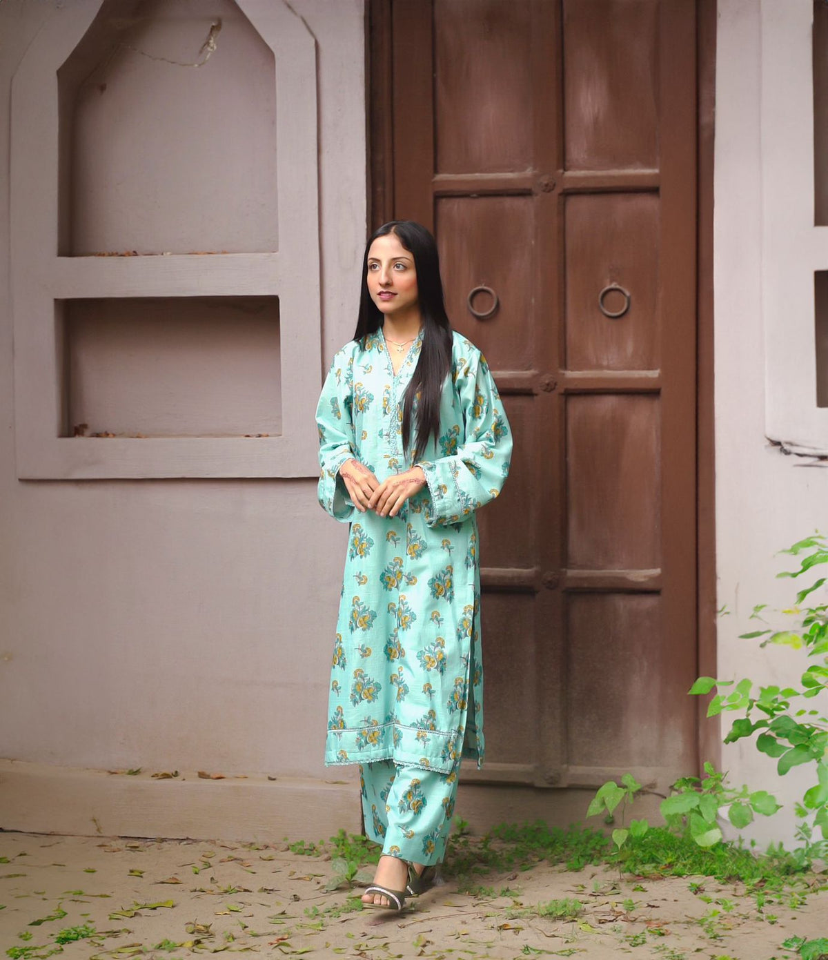 Capture the essence of effortless elegance with this stunning Teal Floral Khaddar 2-Piece Suit. Perfect for the fashion-forward individual who values comfort and traditional charm, this ensemble is an essential addition to your wardrobe for the current season.